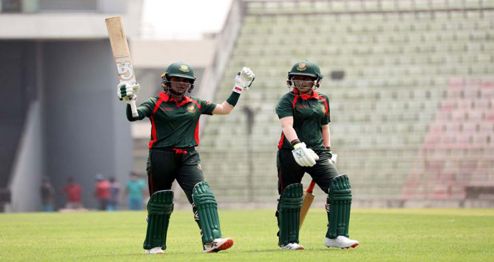 এই বোঝাটা নিতে যে সক্ষম, নিজে পারফর্ম করে তা দিয়েছেন জানিয়ে।টানা জয়ের পাশে দ্বিতীয় সেঞ্চুরিতে এখন হাওয়ায় উড়ছেন জ্যোতি। বরিবার তার সেঞ্চুরিতে ভর করে ২৩৬/৪ স্কোর পুঁজিকে ১১০ রানের বিশাল জয়ে পরিনত করেছে বাংলাদেশ ইমার্জিং ওম্যান্স টিম। আগামী ১৩ এপ্রিল শেষ ম্যাচ জিতলেই হোয়াইট ওয়াশের উৎসব করবে বাংলাদেশের মেয়েরা। নেতৃত্বের ভারটা ভালই সইতে পারেন, সিলেটে অনুষ্ঠিত সিরিজের দ্বিতীয় ম্যাচে হার না মানা সেঞ্চুরিতে (১০১*) জানিয়ে দিয়েছেন তা জ্যোতি। ৫ দিন পর সেই সিলেটে ভিডিও রিপ্লেটা অন করলেন জ্যোতি। এবারো একই স্কোর এবং নট আউট ! ১৩২ বলে ৮ চার,১ ছক্কায় ১০১*। তিন নম্বরে ব্যাটিংয়ে নেমে শেষ বল পর্যন্ত ছিলেন অবিচ্ছিন্ন। ২য় উইকেট জুটিতে মুরশিদাকে নিয়ে ৮২ এবং চতুর্থ উইকেট জুটিতে ৯৭ রানে নেতৃত্ব দিয়েছেন জ্যোতি। জবাব দিতে আসা সফরকারী দক্ষিণ আফ্রিকা ওম্যান্স টিম সালমা (২/১৯),ফাহিমার (৪/২৯) বোলিংয়ে ১২৬ রানে ইনিংস গুটিয়ে নেয়। সফরকারী দলের মিডল অর্ডার আনিকা বোসেক করেছেন সর্বোচ্চ ৬৩ রান। শুধু সেঞ্চুরিই নয়, উইকেটের পেছনে দাঁড়িয়ে ২টি স্ট্যাম্পিং এবং একটি ক্যাচও নিয়েছেন নিগার সুলতানা জ্যোতি। বাংলাদেশ ইমার্জিং ওম্যান্স : ২৩৬/৪ (৫০.০ ওভারে),শারমিন সুলতানা ১০,মুরশিদা ৪১,নিগার সুলতানা ১০১*,পিংকি ১, সুবহানা মুস্তারি ৪৫,লতা মন্ডল ২৫*,অ্যান্ডুজ ১/১৯, বেনেটি ১/৪৫,জোন্স ১/৪০। সাউথ আফ্রিকা ইমার্জিং ওম্যান্স : ১২৬/১০ (৪৬.৫ ওভারে),স্টেইন ১২, আনিকা বোসেক ৬৩, সালমা খাতুন ১০-৩-১৯-২,রিতু মনি ১০-১-১৫-১,নাহিদা ৭-১-৩১-১, ফাহিমা ৯.৫-২-২৯-৪। ফল : বাংলাদেশ ইমার্জিং ওম্যান্স টিম ১১০ রানে জয়ী। প্লেয়ার অব দ্য ম্যাচ : নিগার সুলতানা জ্যোতি (বাংলাদেশ ইমার্জিং ওম্যান্স টিম)।