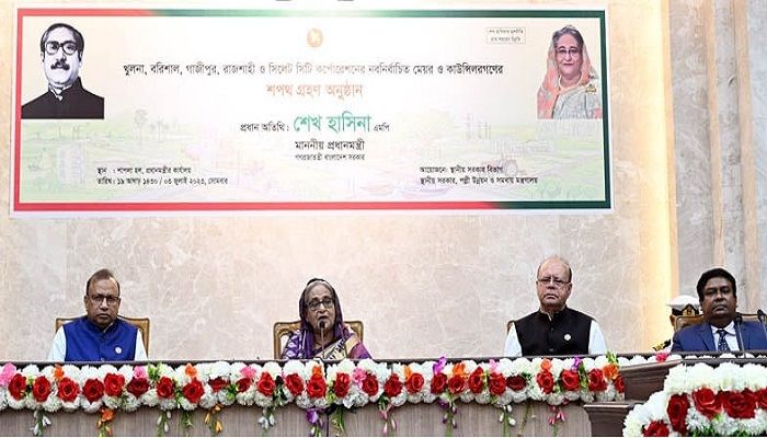সোমবার প্রধানমন্ত্রীর কার্যালয়ের শাপলা হলে তিন সিটি করপোরেশনের নবনির্বাচিত মেয়র বরিশালের আবুল খায়ের আবদুল্লাহ, খুলনার তালুকদার আবদুল খালেক ও গাজীপুরের জায়েদা খাতুনের শপথ অনুষ্ঠানে তিনি এসব বলেন।
