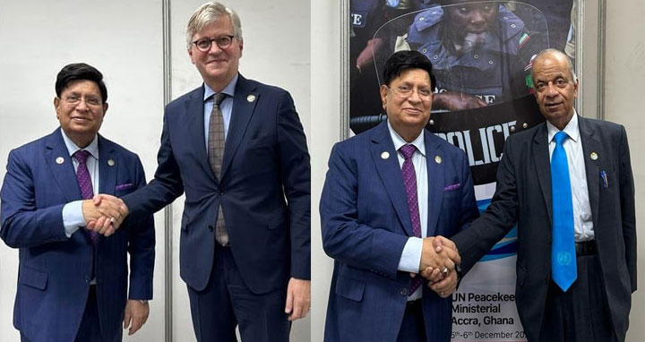 পররাষ্ট্রমন্ত্রী ড. এ কে আব্দুল মোমেন মঙ্গলবার ঘানার আক্রায় অনুষ্ঠিত জাতিসংঘ শান্তিরক্ষা মন্ত্রী পর্যায়ের শান্তিরক্ষা প্রচেষ্টায় জড়িত দুজন জাতিসংঘের আন্ডার সেক্রেটারি জেনারেলের সঙ্গে পৃথক বৈঠক করেছেন।তিনি জাতিসংঘের শান্তি অপারেশন বিভাগের আন্ডার সেক্রেটারি জেনারেল জিন পিয়ারে ল্যাক্রোইক্সের সঙ্গে সাক্ষাৎ করেন এবং জাতিসংঘ শান্তিরক্ষা মিশন সম্পর্কিত বিভিন্ন বিষয়ে আলোচনা করেন।