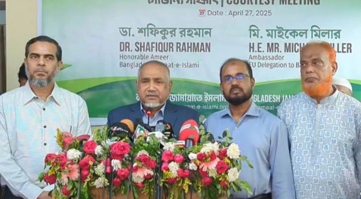 এর আগে বাংলাদেশ জামায়াতে ইসলামীর আমির ডা. শফিকুর রহমানের সঙ্গে সৌজন্য সাক্ষাৎ করতে কেন্দ্রীয় কার্যালয়ে যান ইউরোপীয় ইউনিয়নের (ইইউ) রাষ্ট্রদূত মাইকেল মিলার।