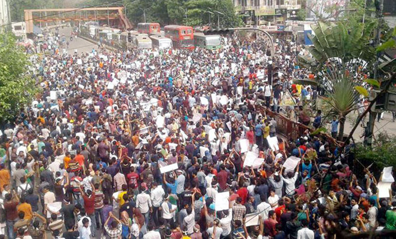 আজ রবিবার দুপুর ২টায় বিভিন্ন শিক্ষাপ্রতিষ্ঠানের শিক্ষার্থী ও চাকরি প্রার্থীরা ঢাকা বিশ্ববিদ্যালয়ের কেন্দ্রীয় লাইব্রেরির সামনে থেকে পদযাত্রাটি শুরু করে। পরে ঢাকা বিশ্ববিদ্যালয়ের কেন্দ্রীয় মসজিদের সামনের রাস্তা দিয়ে বের হয়ে রাজু স্মৃতি ভাস্কর্য হয়ে নীলক্ষেত ও কাঁটাবন ঘুরে শাহবাগের মোড়ে এসে অবস্থান নেন তাঁরা।