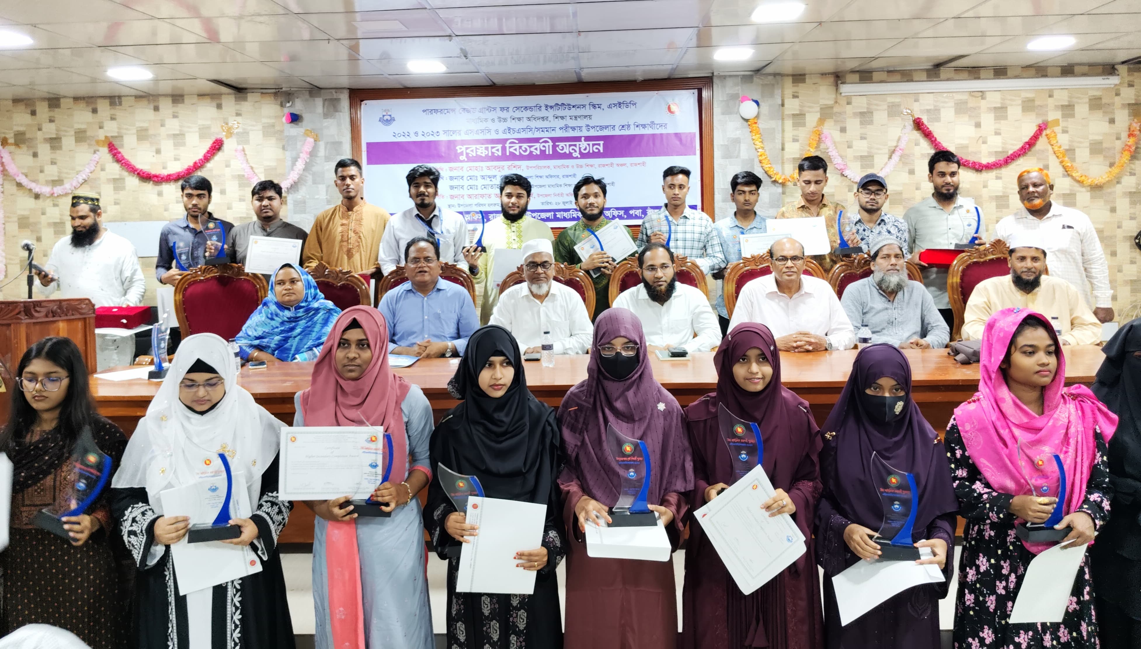 বাংলাদেশ সরকারের শিক্ষা মন্ত্রণালয়ের সেকেন্ডারি এডুকেশন ডেভেলপমেন্ট প্রোগ্রাম (এসইডিপি) এর আওতায় পারফরমেন্স বেজড গ্রান্টস ফর সেকেন্ডারি ইন্সটিটিউশনস (পিবিজিএসআই) স্কিমের অধীনে এই অনন্য উদ্যোগ গ্রহণ করা হয়েছে। সেই লক্ষ্যে সোমবার (২৮ জুলাই) সকালে আয়োজিত এক অনাড়ম্বর অনুষ্ঠানে ২০২২ ও ২০২৩ সালের এসএসসি ও এইচএসসি পরীক্ষায় শ্রেষ্ঠ ফলাফল অর্জনকারী শিক্ষার্থীদের হাতে ক্রেস্ট ও সম্মাননা সনদ তুলে দেওয়া হয়। শুধু আনুষ্ঠানিক স্বীকৃতিই নয়, শিক্ষার্থীদের ভবিষ্যৎ শিক্ষা কার্যক্রমে উৎসাহ জোগাতে দেওয়া হয়েছে আর্থিক অনুদানও। এই অনুদানের অর্থ ইতোমধ্যে শিক্ষার্থীদের নিজ নিজ ব্যাংক অ্যাকাউন্টে সরাসরি পাঠিয়ে দেওয়া হয়েছে। এসএসসি পর্যায়ের কৃতী শিক্ষার্থীরা প্রত্যেকে ১০ হাজার টাকা এবং এইচএসসি পর্যায়ের শিক্ষার্থীরা প্রত্যেকে ২৫ হাজার টাকা করে পেয়েছেন।