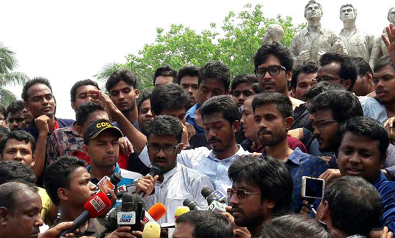 ঢাকা বিশ্ববিদ্যালয়ের রাজু ভাস্কর্যের সামনে এক সংবাদ সম্মেলনে আন্দোলনের নেতারা এই ঘোষণা দেন। নেতারা জানান, আন্দোলন প্রত্যাহার বা বাতিল নয়, প্রধানমন্ত্রীর ঘোষণা অনুযায়ী কোটা ব্যবস্থা বাতিলের প্রজ্ঞাপন জারি পর্যন্ত আন্দোলন স্থগিত ঘোষণা করছেন তারা। একইসঙ্গে ঢাকা বিশ্ববিদ্যালয়ের উপাচার্য ড. মো. আখতারুজ্জামানের বাসভবনে হামলা ও ভাঙচুরসহ বিশ্ববিদ্যালয় এলাকায় সহিংসতার ঘটনায় দায়ের করা সব মামলা প্রত্যাহার ও আন্দোলনের সময় দেশের বিভিন্ন জায়গায় আট শিক্ষার্থীদের মুক্তি দেওয়ার দাবি জানিয়েছেন।