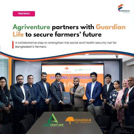 বাংলাদেশের কৃষকদের আর্থিক নিরাপত্তা দেয়ার লক্ষ্যে গার্ডিয়ান লাইফ ইন্স্যুরেন্স লিমিটেড ও অ্যাগ্রোফিনটেক স্টার্টআপ এগ্রিভেঞ্চার লিমিটেড যৌথভাবে কৃষকদের জন্য ‘ক্রেডিট শিল্ড ইন্স্যুরেন্স’ সেবা চালু করেছে। এ অংশীদারিত্বের মাধ্যমে এগ্রিভেঞ্চারের অর্থায়নে গার্ডিয়ান এখন থেকে কৃষকদের বীমা সুরক্ষা দিবে। এর ফলে, কোন অপ্রত্যাশিত বিপর্যয়ের সময়েও কৃষকদের অতিরিক্ত ঋণের ভার বহন করতে হবে না।