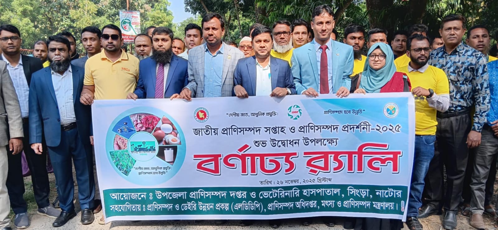 “দেশীয় জাত, আধুনিক প্রযুক্তি—প্রাণিসম্পদ হবে উন্নতি” প্রতিপাদ্য নিয়ে নাটোরের সিংড়ায় প্রাণিসম্পদ প্রদর্শনী মেলা, র্যালি ও আলোচনা সভা অনুষ্ঠিত হয়েছে। উপজেলা প্রাণিসম্পদ দপ্তর ও ভেটেরিনারি হাসপাতালের আয়োজনে বুধবার (২৬ নভেম্বর) দিনব্যাপী উপজেলা প্রাণিসম্পদ চত্বরে এ মেলা অনুষ্ঠিত হয়।