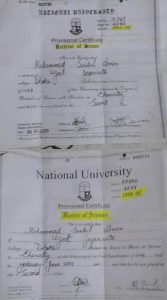 প্রাপ্ত তথ্যে দেখা যায়, জাতীয় বিশ্ববিদ্যালয়ের অধীনে তৎকালীন সরকারি জগন্নাথ কলেজ থেকে ১৯৯৪-৯৫ সেশনে রসায়ন বিভাগে স্নাতক (অনার্স) সম্পন্ন করার একটি সনদ রয়েছে সাইদুল আমিনের নামে। ওই সনদ অনুযায়ী তিনি ১৯৯৭ সালে পরীক্ষা দিয়ে দ্বিতীয় শ্রেণিতে উত্তীর্ণ হন এবং সনদটি ইস্যু করা হয় ২০০০ সালের ৪ জানুয়ারি। কিন্তু একই সেশনে তার নামে আবার স্নাতকোত্তর ডিগ্রিরও একটি সনদ পাওয়া গেছে। সেই সনদে উল্লেখ রয়েছে, তিনিও একই ১৯৯৪-৯৫ সেশনে ভর্তি হয়ে রসায়ন বিভাগে স্নাতকোত্তর সম্পন্ন করেছেন। সেখানে বলা হয়েছে তিনি ১৯৯৮ সালে পরীক্ষা দিয়ে ২০০১ সালে পাস করেন। অথচ শিক্ষাবিদদের মতে, একই সেশনে কোনো শিক্ষার্থী স্নাতক ও স্নাতকোত্তর উভয় ডিগ্রি অর্জন করা বাস্তবসম্মত নয়। বিষয়টি নিয়ে জাতীয় বিশ্ববিদ্যালয়ের এক কর্মকর্তা নাম প্রকাশ না করার শর্তে বলেন, একজন শিক্ষার্থী একই সেশনে অনার্স এবং মাস্টার্সে ভর্তি হওয়ার সুযোগই নেই। ফলে এই ধরনের সনদের সত্যতা নিয়ে সন্দেহ হওয়াটা স্বাভাবিক।