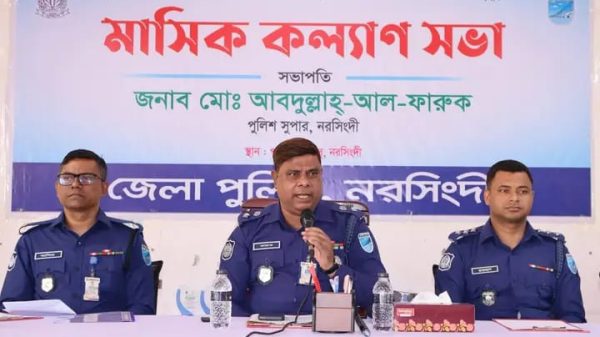 নরসিংদী পুলিশ লাইন্সে জেলা পুলিশ, নরসিংদীর মাসিক কল্যাণ সভা অনুষ্ঠিত হয়। সভায় সভাপতিত্ব করেন নরসিংদী জেলার সম্মানিত পুলিশ সুপার মোঃ আবদুল্লাহ্-আল-ফারুক। সভায় বিভিন্ন পদবীর পুলিশ সদস্যগণ বক্তব্য রাখেন। পুলিশ সুপার বিস্তারিত...