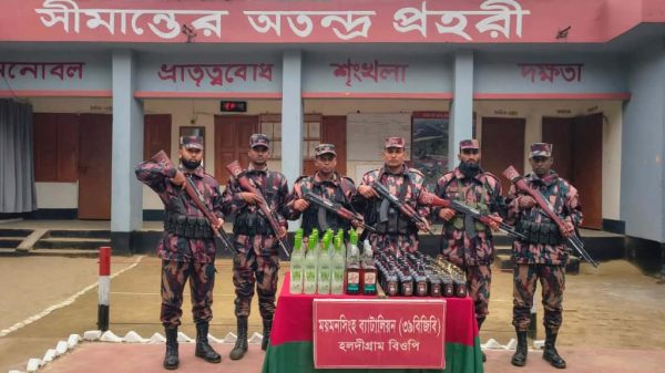 গারো পাহাড়সংলগ্ন শেরপুর–ময়মনসিংহ সীমান্ত এলাকায় পৃথক অভিযান চালিয়ে বিপুল পরিমাণ অবৈধ ভারতীয় মদ ও বিভিন্ন ধরনের চোরাচালানি পণ্য জব্দ করেছে বর্ডার গার্ড বাংলাদেশ (বিজিবি) (০৪ জানুয়ারি ২০২৬) দিবাগত রাতে ময়মনসিংহ বিস্তারিত...